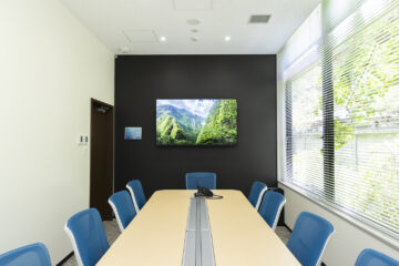 また移転をきっかけにアフレコスタジオをご用意いたしました。20名収容できるブースをご用意しております。コントロールルームも15名ほど入室できる広さがございます。65インチのモニターで映像をご覧になれます。