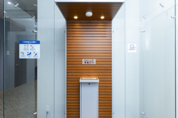 喫煙者の方に嬉しい、室内喫煙スペースもご用意しています。紙・電子どちらのタバコにも対応しており、最大2名様まで同時利用が可能です。強力なファンが煙をしっかり吸引しますので、ニオイが周囲に広がる心配もございません。収録の合間にひと息つきたい時にぜひご利用ください。