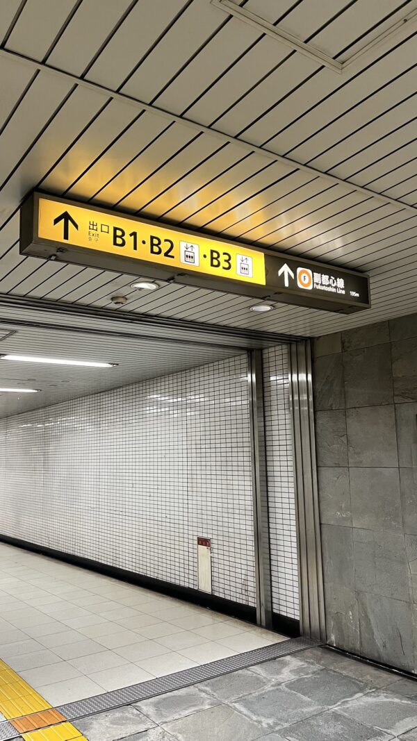 ① 都営大江戸線の改札を出てB1~2出口方面へ進みます(大江戸線・副都心線は駅構内で繋がっています)。