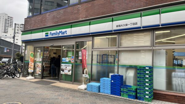 ④ 交差点でぶつかる大きな通りが明治通りとなっているので、そこを右に曲がります(曲がり角にあるファミリーマート大久保一丁目店が目印です)。